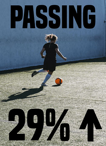 Continued application of this test will improve the basic technique of performing a ground pass and lofted pass which is a basic skill in the game, both feet can be measured under separate tests and the difficulty can be increased by implementing the following adaptations: