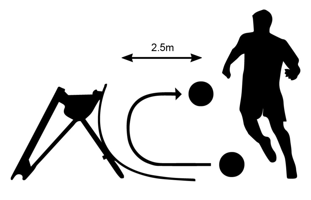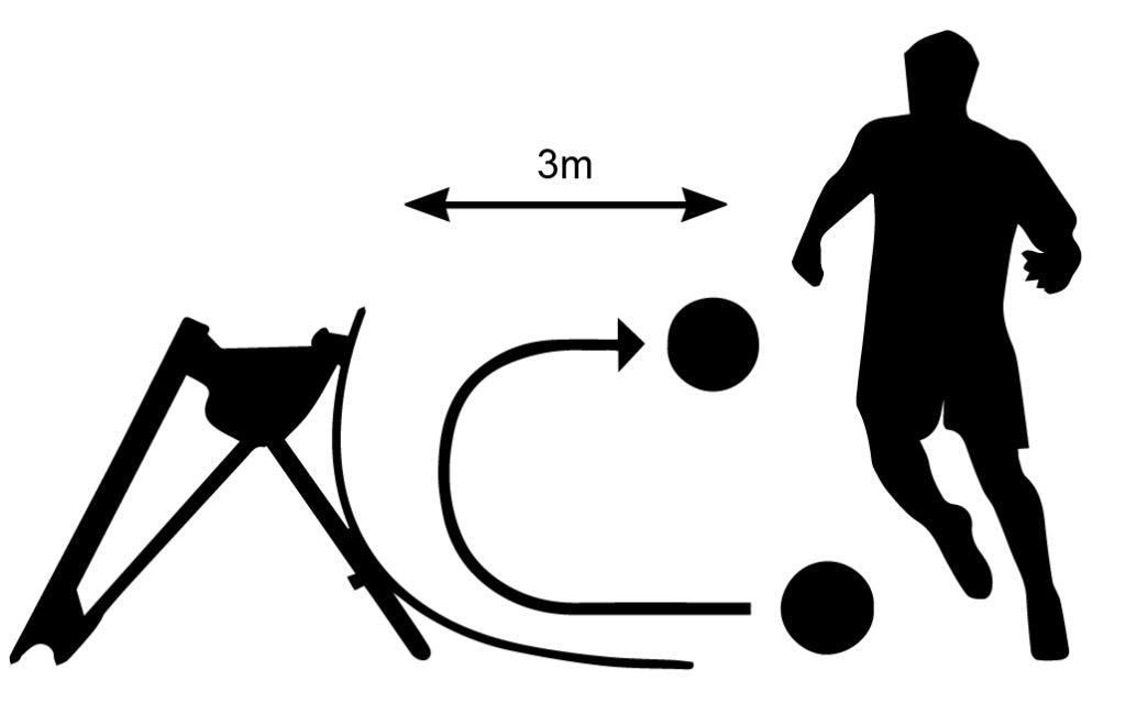 Pass the ball 10 times using either foot from a 3 metre distance. Repeat for both the Curved Ramp and the Angled Rebounder, ensuring the ball is returned successfully to the player after each attempt.