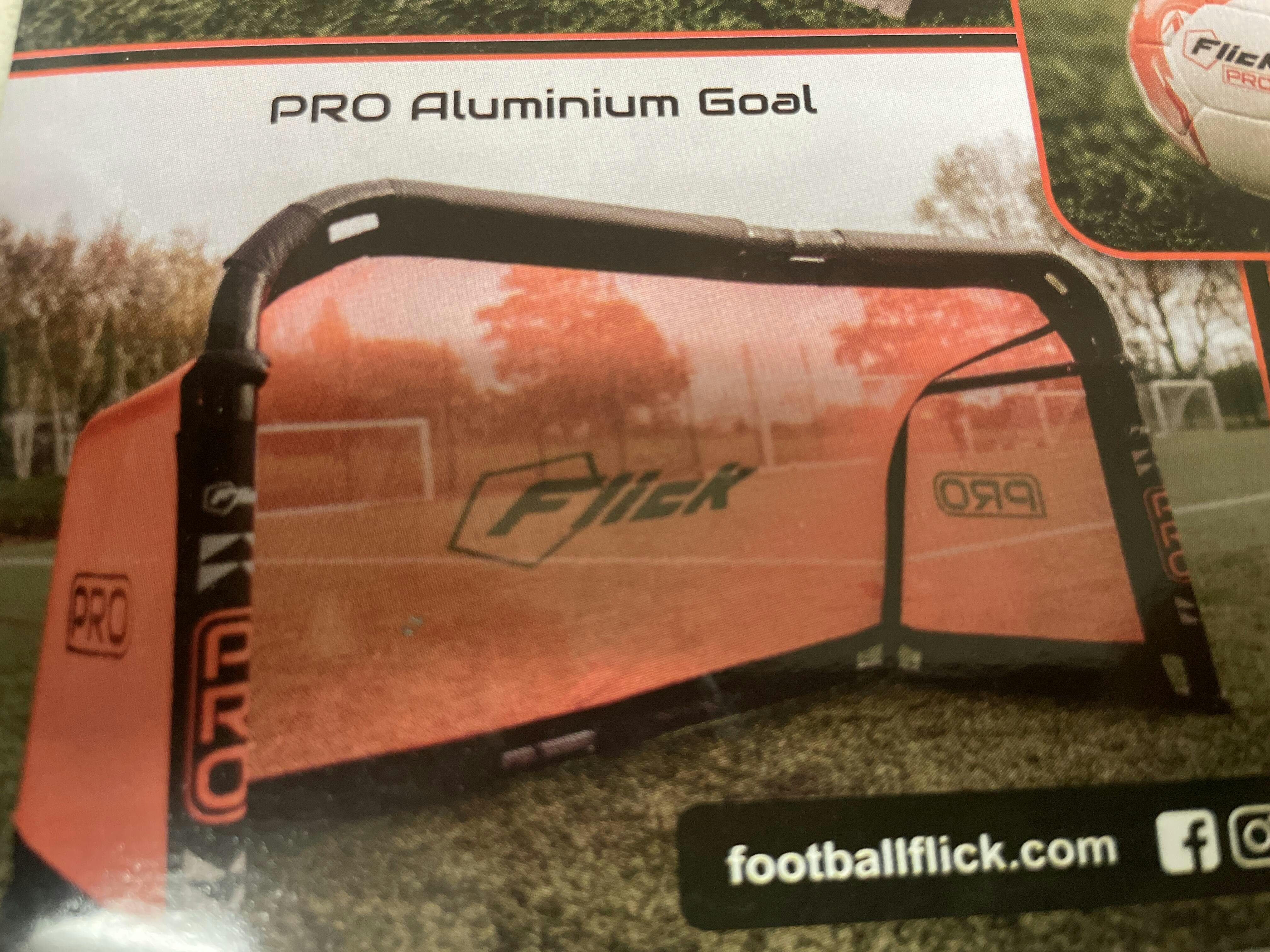 The Flick PRO Aluminium Folding Football Goal is a 5ft x 3ft freestanding football goal with a highly visible orange mesh net and includes PRO branding. The 50mm aluminium posts are foldable & can be set up in seconds. The goal can also be collapsed for easy transportation or storage.